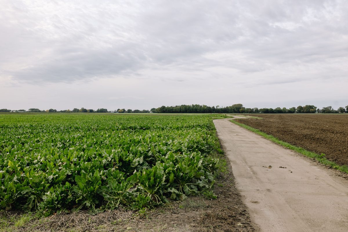 Er rijdt een trein over de spoordijk links van ons. Rechts ligt een paars-groene strook luzerne, met daarnaast een smalle strook met een ander gewas. Daar weer naast staat graan. ‘Dit is toch geweldig, zo’n onverhard pad?’, zegt Hemel verrukt. ‘Dat vind je bijna nergens in Groningen. We hebben de onhebbelijke neiging alles te verharden. Is dit pad privaat of publiek? Dat weet je niet, dat maakt het spannend.’ Hij wijst. ‘Aan het eind gaan we naar rechts.’